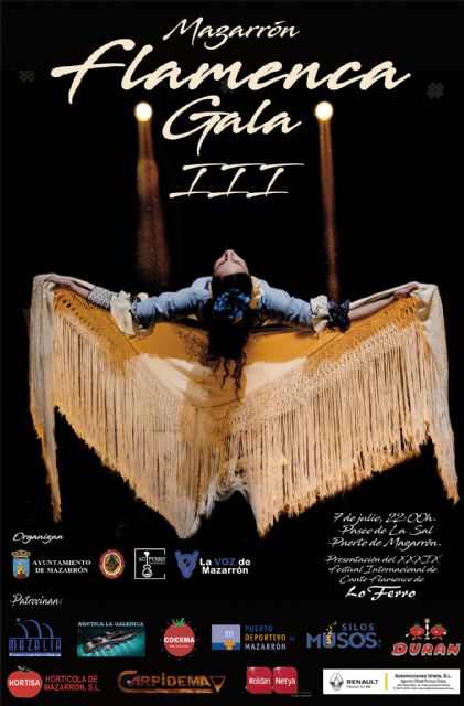 El Paseo de la Sal del Puerto Deportivo de Puerto de Mazarrón acoge este sábado 7 de julio la III Gala Flamenca. Será a partir de las 22:00 horas con acceso gratuito al aire libre y junto al mar.