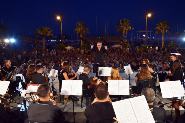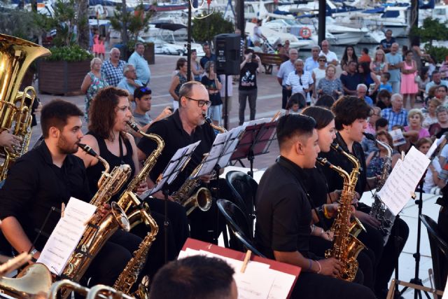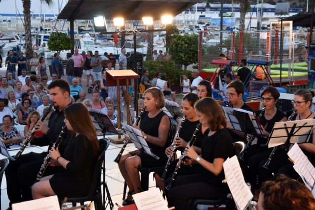 En el incomparable marco del Puerto Deportivo de Puerto de Mazarrón y ante más de cuatrocientas personas, la banda de música anfitriona comenzó la primera parte del concierto con el pasodoble ‘La concha flamenca’, una de las obras más célebre y singular del compositor Perfecto Artola Prats. Continuó con ‘Romeo y Julieta’, del compositor Prokofieff, con arreglos de Johan de Meij, una de las obras más apreciadas de ese compositor, de gran variedad rítmica. La música de ‘Romeo y Julieta’ de Prokofieff trasladó al público al centro de las luchas entre Montescos y Capuletos, haciéndole entender el amor prohibido entre los dos enamorados más famosos de la historia. Cerró la primera parte del concierto ‘La vuelta al mundo en 80 días’ de Otto M. Schwarz, una obra basada en la famosa novela de Julio Verne publicada en 1873, que cuenta la historia del inglés Phileas Fogg quien se compromete a dar la vuelta al mundo en 80 días después de una apuesta con sus amigos. La pieza se acompañó de una breve narración que ilustraba las etapas de ese fascinante viaje.