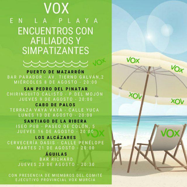 Este miércoles se inició en el Puerto de Mazarrón los "ENCUENTROS CON AFILIADOS Y SIMPATIZANTES", que durante este mes de agosto Vox Murcia va a realizar en diferentes puntos costeros de nuestra provincia.