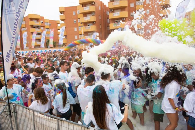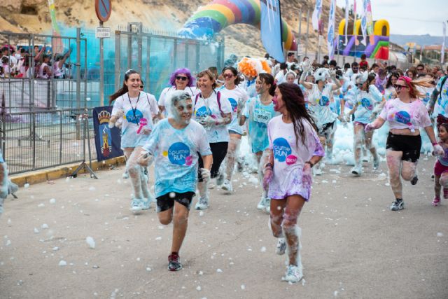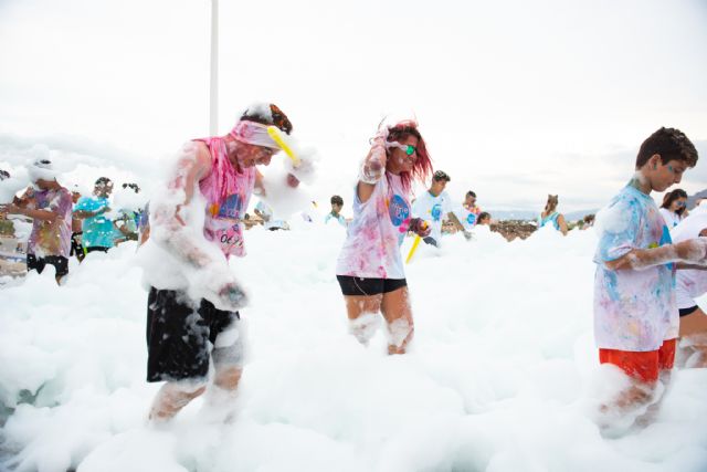 Más de 1.800 personas participaron este sábado en la tercera edición de la carrera de espuma de colores Spume Run de Puerto de Mazarrón. A las 7 de la tarde del pasado sábado se daba la salida desde la explanada del mercadillo municipal. Por delante esperaban cinco kilómetros con cañones de espuma a cada kilómetro, también llamados spumepoints. Cada uno de ellos lanzaba espuma de un color diferente (rosa, amarillo, azul y verde) al paso de los participantes.