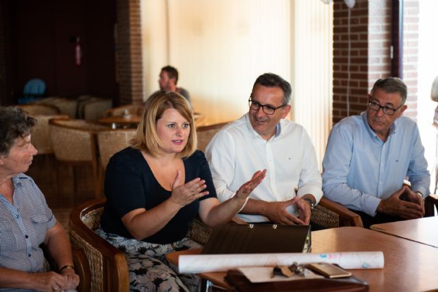 Alicia Jiménez, alcaldesa del Ayuntamiento de Mazarrón, Diego Conesa, delegado del Gobierno en Murcia y Mario Urrea, presidente de la Confederación Hidrográfica del Segura se han reunido con representantes vecinales de la urbanización de Camposol en la que les han transmitido las novedades relativas al encauzamiento de la rambla de Los Aznares tras aceptar el organismo de cuenca la propuesta realizada por el Ayuntamiento.