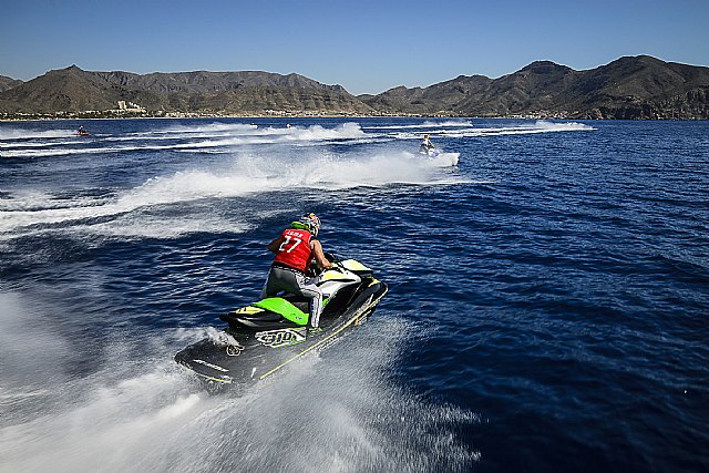 Las motos de agua se exhiben en la Bahía de Mazarrón