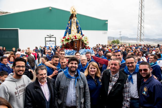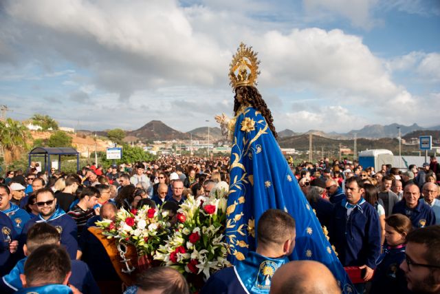 Miles de romeros acompañaron este domingo a la Purísima Concepción en su regreso a la ermita de Bolnuevo. El multitudinario acto con el que se pone fin a las Fiestas del Milagro contó esta vez con la presencia del presidente de la Comunidad Autónoma, Fernando López Miras y del delegado del Gobierno en Murcia, Diego Conesa. La alcaldesa de Mazarrón, Alicia Jiménez, acompañó a la imagen de la Purísima desde la iglesia de San Andrés hasta su ermita. La popular romería cumplió con sus tradicionales paradas entre trovos y cánticos a la Virgen. Una de estas paradas tuvo de escenario, como de costumbre, la desaladora Virgen del Milagro.