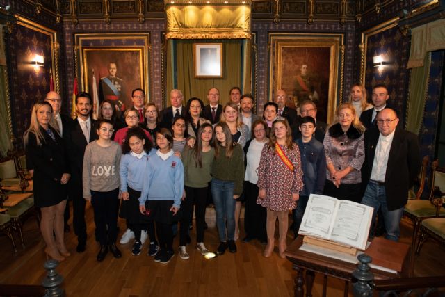 Como ya es tradición, tras el Pleno Extraordinario tuvo lugar un Pleno Infantil con la participación de alumnos de Primero de la ESO y de usuarios del Centro de Día de Personas con Discapacidad Intelectual. Los alumnos participantes fueron Alba Ruiz y Jessica Dokaj del Colegio Siglo XXI, Laura Paños y Sofía Ballesta del IES Felipe II, David Sánchez y Alicia Ramón del IES Domingo Valdivieso y Catalina Hernández y Leonor Morales del Centro de Día. Tras las lecturas correspondientes se procedió a la foto de familia.