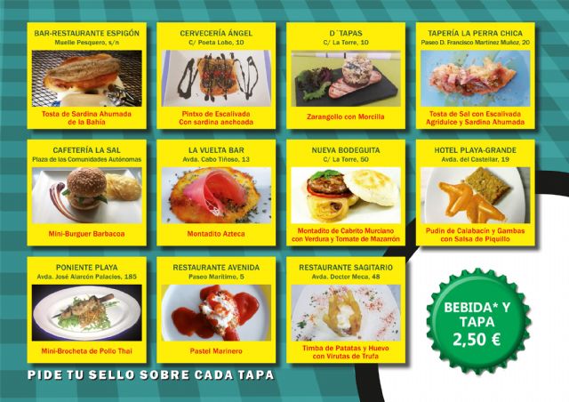 Los establecimientos participantes son: Bar Restaurante Espigón, Cervecería Ángel, Restaurante Avenida, La Perra Chica, La Sal, Poniente Playa, De Tapas, La Vuelta Bar, Restaurante Sagitario, Nueva Bodeguita y Hotel Playa Grande.