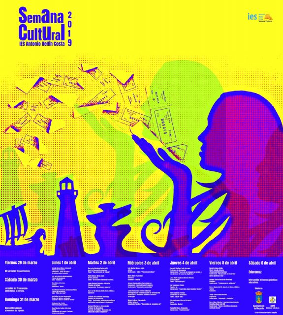En total serán más de 25 conferencias y talleres que girarán en torno al arte, la ciencia, la literatura, la música, la tecnología, el medioambiente y la solidaridad. La agenda de la I Semana Cultural del centro dará comienzo el viernes 29 de marzo con la celebración de las XIII Jornadas de Convivencia dedicadas en esta ocasión a la comunidad latinoamericana. El sábado 30 de marzo, a las 9:00 horas en el Centro Cultural, tendrá lugar unas Jornadas de Profesorado dedicadas al fomento de la lectura y el domingo 31 de marzo, a las 10:00 horas en el patio exterior del IES Antonio Hellín, se llevará a cabo un mercadillo solidario a beneficio de 'D'genes'.