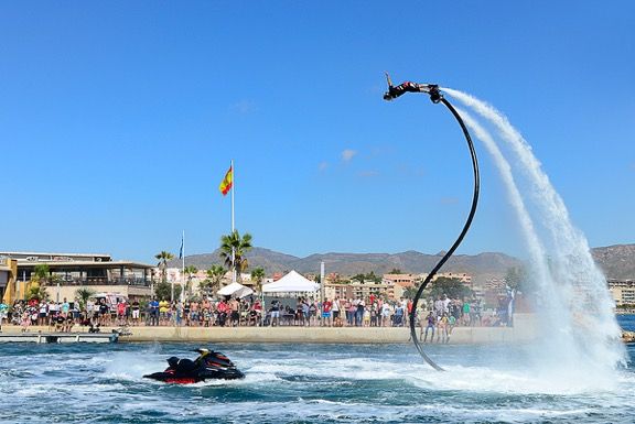 Lo que comenzó siendo un entretenimiento para el público que asistía a las pruebas clásicas de motos de agua se ha convertido, en pocos años, en una especialidad imprescindible en la competición náutica de motor. El Flyski crece constantemente y atrae a un numeroso público asombrado por la espectacularidad de las arriesgadas acrobacias.