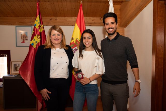 La alcaldesa de Mazarrón, Alicia Jiménez, ha recibido hoy a Ana Isabel Navarro Montilla, quien recientemente se ha proclamado campeona regional en la prueba de 600 metros lisos en categoría sub 16