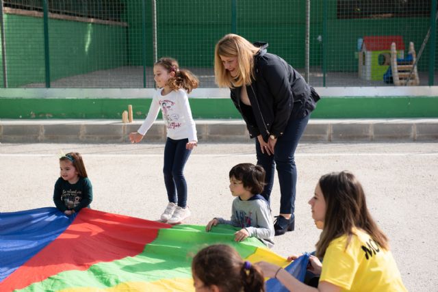 La alcaldesa de Mazarrón, Alicia Jiménez, ha visitado este miércoles los colegios Francisco Caparrós de Mazarrón y Bahía de Puerto de Mazarrón que participan del programa de conciliación 'Escuela de Semana Santa' promovido por el Ayuntamiento de Mazarrón y organizado junto al colectivo El Candil.