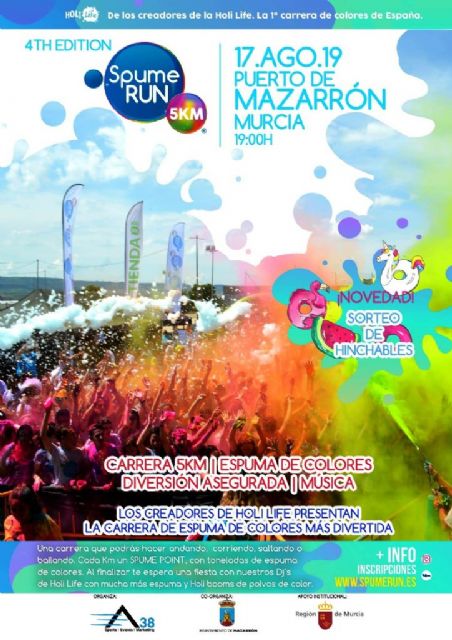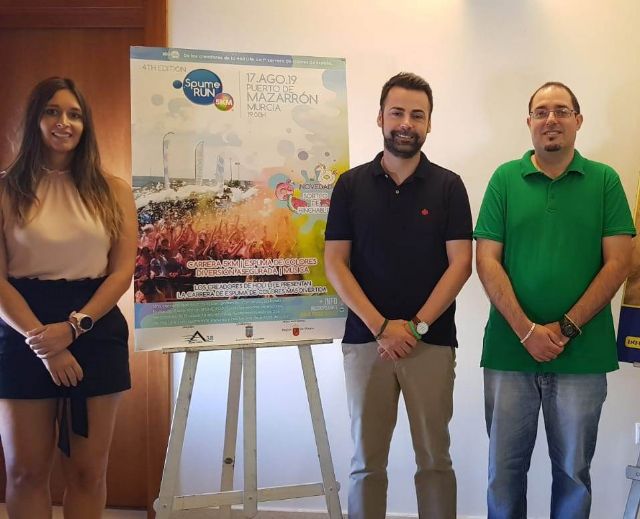 El próximo sábado 17 de agosto, Puerto de Mazarrón volverá a acoger una nueva edición de la 'Spume Run' que ha sido presentada por el concejal de Festejos, Miguel Ángel Peña, la concejala de Juventud, Silvia García, y el concejal de Deportes, Francisco José García. Tal y como explicado Peña, "se trata de la cuarta edición de esta actividad que volverá a contar con 5 kilómetros de recorrido con arcos de espuma y color y que tendrá como lugar de salida y de llegada la explanada del mercado semanal de Puerto de Mazarrón".