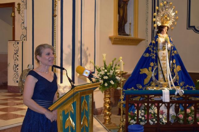 Por su parte, la presidenta de la Archicofradía de la Purísima, Isabel María Ballesta, aprovechó la ocasión para anunciar la confección de un nuevo manto para la patrona con motivo del 70 aniversario de la creación de la talla. "Un manto de camarín bordado en relieve con hilo de plata, oro y seda sobre terciopelo alemán color azul cielo". Los devotos pueden colaborar para la consecución de esta iniciativa con una aportación económica de 30 euros.