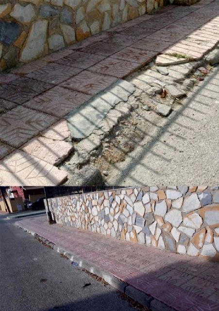 Especial atención merece la celeridad con que se trató la problemática de un derrumbe en la acera en la avenida Constitución de Mazarrón frente al CIME para evitar que nadie resultase dañado y que cuenta con una reparación de urgencia mientras se tramita a través de la concejalía de Urbanismo e Infraestructuras el proyecto de reparación, tal y como desveló su titular Ginés Campillo.
