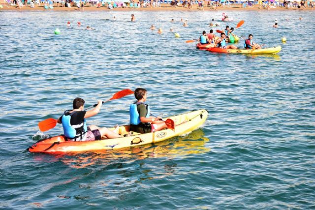 Las concejalías de Juventud y Deportes se han coordinado este año para celebrar con un gran número de iniciativas el Día Internacional de la Juventud. Durante toda la mañana, los más de 50 jóvenes que se han inscrito en el programa de actividades han podido iniciarse en el mundo del submarinismo con bautismos de buceo, así como practicar diversos deportes como el voley playa, el kayak o el frisbee. Los jóvenes han sido recibidos por la concejala de Juventud, Silvia García, el edil de Deportes, Francisco José García, y el presidente de la Federación de Actividades Subacuáticas de la Región de Murcia (FASRM), Jesús Cano.