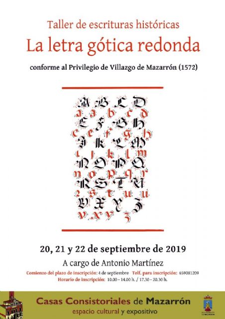 El concejal de Cultura del Ayuntamiento de Mazarrón, Ginés Campillo, ha destacado que "la elección de la Carta del privilegio de Mazarrón para desarrollar estos talleres ha sido la idónea para abordar esta actividad pues aúna el objetivo del mismo, que es conocer y practicar la escritura gótica redonda, con la trasmisión de nuestra historia entre los participantes".