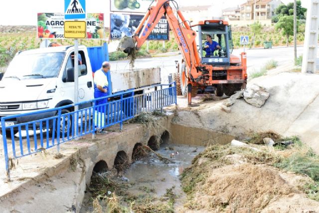 La limpieza de las ramblas, especialmente en la zona de Ifre, ha sido otra de las actuaciones destacadas por la concejalía de Servicios en la mañana de hoy. Los operarios municipales han limpiado las cañas, matorrales y los restos de basura que, arrastrados por las lluvias, han llenado los márgenes y cauces de diversas ramblas del municipio. De ellas, hay que destacar que, ante la previsión de crecida de la rambla de Las Moreras, Protección Civil y Policía Local procedió a cortar el tráfico en la carretera D-4 que lleva desde Mazarrón a Morata y que se prevé esté abierta al tráfico rodado en las próximas horas.