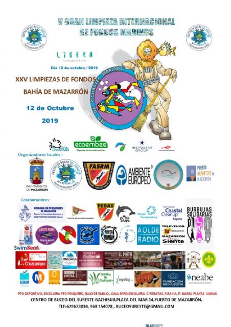 En lo que se refiere a los fondos marinos "se van a hacer 7 puntos de limpieza, entre ellos el puerto pesquero con la colaboración por primera vez de la Cofradía de Pescadores de Puerto de Mazarrón, y se dispondrán 5 embarcaciones para los buceadores". Todos podrán "disfrutar de una gran paella gigante y posterior fiesta que se celebrará como una gran convivencia ya que no sólo vienen buceadores de Murcia sino que llegan de toda España y también de fuera de ella".