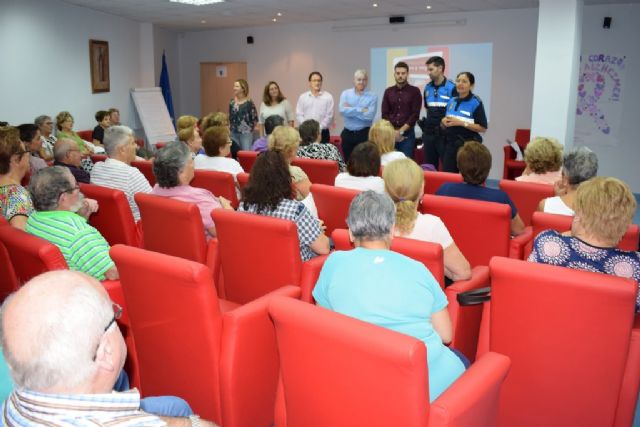 El alcalde de Mazarrón, Gaspar Miras, y el primer teniente de alcalde, Ginés Campillo, acompañados de la coordinadoras de Educación Vial de la citada Jefatura, María Úbeda y Berta Cabero, del director del Centro de Día de Personas Mayores, Bartolomé Madrid, y los agentes de la Policía Local, Alberto Zomeño y Magdalena Valverde, han dado la bienvenida a los asistentes a la charla que se ha repetido unas horas más tarde en el Centro de Personas Mayores de Puerto de Mazarrón.