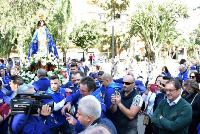 La imagen, tras su tradicional paso por la desaladora de la comunidad de regantes y el núcleo poblacional de Las Moreras, ha sido recibida en el jardín de 'La Purísima' por el alcalde de Mazarrón, Gaspar Miras, el concejal de Festejos, Miguel Ángel Peña, y otros miembros de la corporación municipal y autoridades religiosas. Allí, y durante todo el recorrido, se han entonado cánticos y vítores a la virgen que obre el milagro un 17 de noviembre de 1.585.
