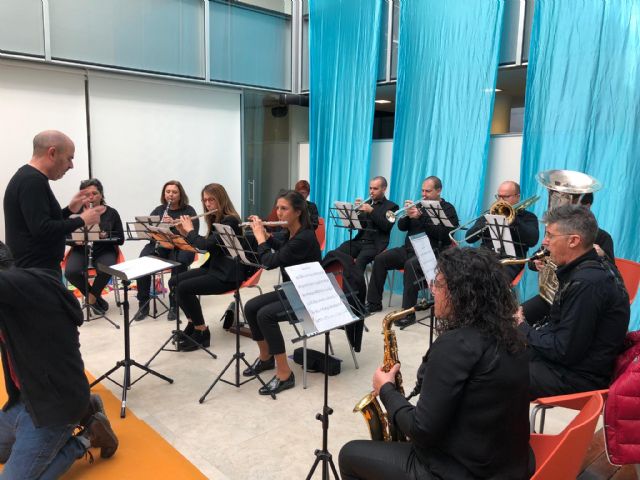 El concierto de la banda de adultos, dirigida por D. Alejandro Castañeda Martínez, se realizó en el patio del Centro Cultural y constó de siete piezas cortas y variadas como Slidin’ the blues o We Will rock you, sin olvidar obras infantiles como Drilo, el cocodrilo o Baby Shark. El público, sobre la moqueta extendida en el suelo, acompañó todas las piezas musicales con movimientos, claves, cintas de colores, cascabeles…, unas veces sentados otras de pie, saltando o a ritmo de marcha, siguiendo las instrucciones de D. Bartolomé Cánovas.