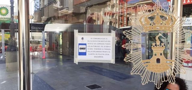 Con motivo de este desfile, las paradas de autobuses de la avenida de la Constitución se trasladan a la explanada de las dependencias Locales en horario de 10 a 14 horas para facilitar el desfile de carrozas y no alterrar el horario de las líneas regulares.