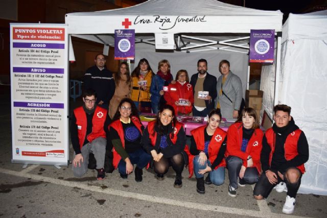En las carpas dispuestas para ello, se dieron cita 9 voluntarios de Cruz Roja, entre los que se contaban una doctora y dos psicólogas. Asimismo, los voluntarios destinados en el 'Punto Violeta' habían recibido la información necesaria sobre violencia de género para conocer de primera mano las situaciones que pueden llegar a producirse en lo que se refiere a esta problemática social.