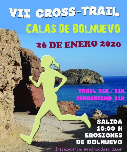 El último fin de semana de enero también nos citará con otra prueba sobre terreno montañoso. Será el domingo 26, con motivo del VII Cross-Trail “Calas de Bolnuevo”, dando la opción de completar aproximadamente 21km. en la distancia larga, así como 11km. en la cita corta, que también podrán cubrir quienes estén interesados en hacerlo en la modalidad senderista. Todo ello, con salida y meta en la explanada de las erosiones de Bolnuevo, a partir de las 10:00h. y recorriendo el paraje natural de las calas vírgenes de Mazarrón.