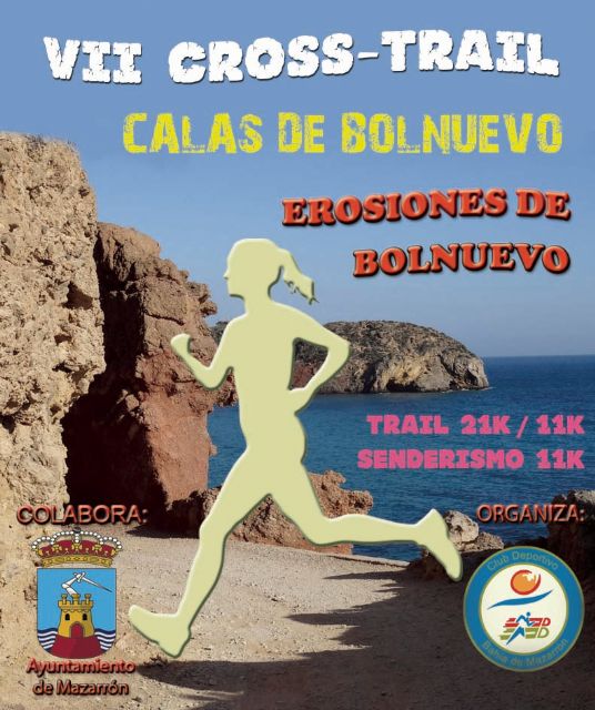 Este domingo 26, las calas de Bolnuevo serán el escenario de la VII carrera de Cross Trail que organiza el Club Deportivo Bahía de Mazarrón con la colaboración de Ayuntamiento de Mazarrón y la Federación de Atletismo de la Región de Murcia (FAMU). El concejal de Deportes, Francisco José García, y el presidente del citado club, José Manuel Lorente, presentaron la cita deportiva que saldrá de las Erosiones de Bolnuevo a partir de las 10 de la mañana.