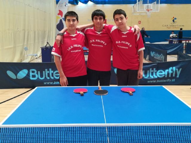 Los jugadores del I.E.S. 'Felipe II', representado por los alumnos Christian Catevilla, Sebastián Cortés y Sebastián Moreno; realizaron una gran actuación clasificándose para la final regional cadete de Tenis de Mesa que se celebrará el 29 de febrero en el pabellón de deportes de 'La Cañadica'.