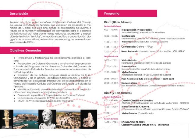 Este jueves 21, el Centro de Interpretación Yacimiento de Tutugi en Galera (Granada) acoge la celebración de la IV Asamblea General Ordinaria de Socios de la Asociación Red Española de 'La Ruta de los Fenicios'. Durante la misma, Mazarrón se presentará como nuevo socio, tras regresar a esta asociación en la presente legislatura.
