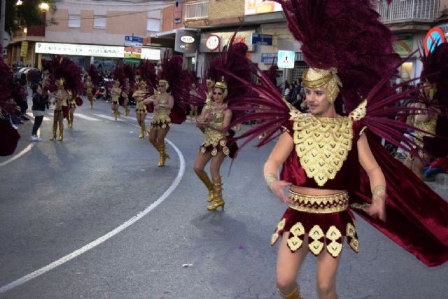 La primera de ellas será la comparsa Salsalá, que obtuvo el primer premio de la cita dotado con 1.500 euros. En segunda posición, y con un premio dotado con 1200 euros, quedó la peña El Salitre. Tercera, con 900 euros, fue la comparsa Mármara. En cuarto puesto quedó Playas de Percheles, que obtuvo 600 euros de premio, y la escuela de danza De Rosa, que consiguió los 300 euros del quinto premio. Junto a ellas, también desfilarán la escuela de baile De Rosa y el AMPA del colegio Ginés García ganadoras del desfile infantil.