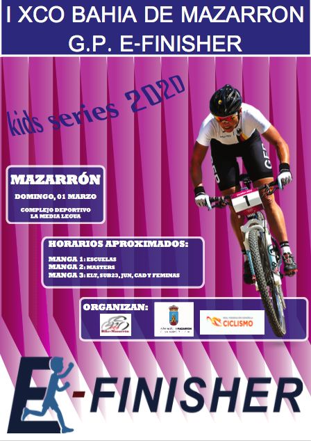 Por otro lado, también se celebrará la I XCO Bahía de Mazarrón G.P. E-Finisher que en este caso organiza el club ciclista Probike Mazarrón. Una prueba que también cuenta con el apoyo de la federación murciana de ciclismo y el consistorio mazarronero. La presentación también contó con la presencia de Francisco José García y Sergio Martínez que, en esta ocasión, estuvieron acompañados del presidente del club mazarronero, Enrique Belchí. Esta prueba se enmarca dentro de la modalidad MTB, celebrándose en un mejorado circuito en el citado complejo deportivo.