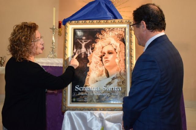 La iglesia de San José de Puerto de Mazarrón acogió la presentación del cartel que anuncia la llegada de la Semana Santa de la localidad costera que este año muestra a La Virgen de las Penas, titular de la cofradía que organiza los actos de este año. El cartel es obra de la fotógrafa mazarronera Teresa López Acosta y muestra a la virgen contemplando a su hijo crucificado.