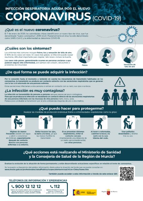 El alcalde ha instado a seguir la evolución de la fase de contención a través de los canales oficiales del ministerio de Sanidad, consejería de Salud y Murcia Salud, tanto en sus páginas web como a través de sus perfiles en las redes sociales. Además, ha recordado que se ha puesto a disposición de los ciudadanos un teléfono de información que es el 900 12 12 12 para aquellos que deseen ampliar más información. Los servicios municipales de emergencia y sanitarios están en todo momento en contacto con los responsables regionales para trabajar de manera conjunta en esta fase de contención.
