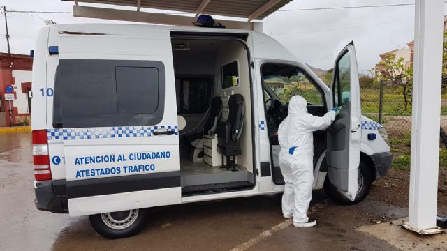 Asimismo, se está llevando a cabo una concienzuda labor de desinfección de los vehículos municipales, especialmente los del cuerpo de la Policía Local, a través de una empresa especializada.