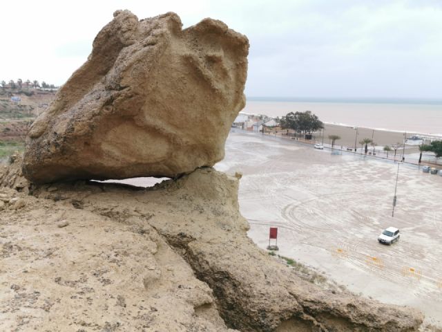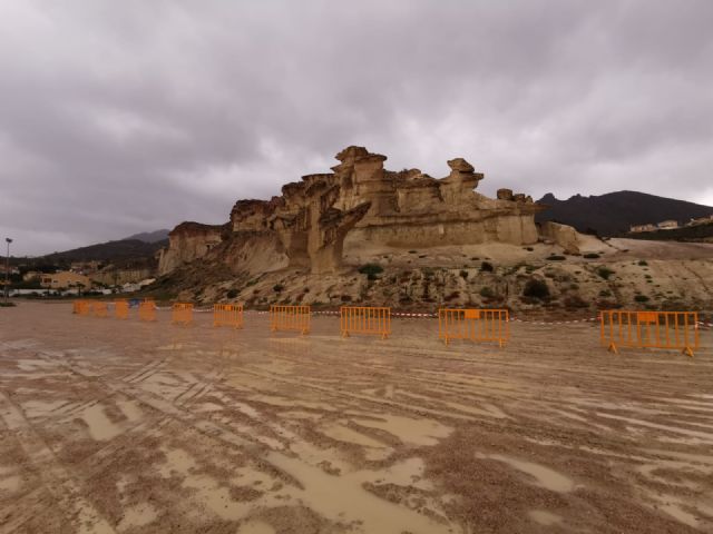 El Ayuntamiento de Mazarrón, ante el riesgo que podría suponer encontrarse cerca de la Erosiones, ha vallado el entorno del monumento natural para mantener la seguridad en la zona.
