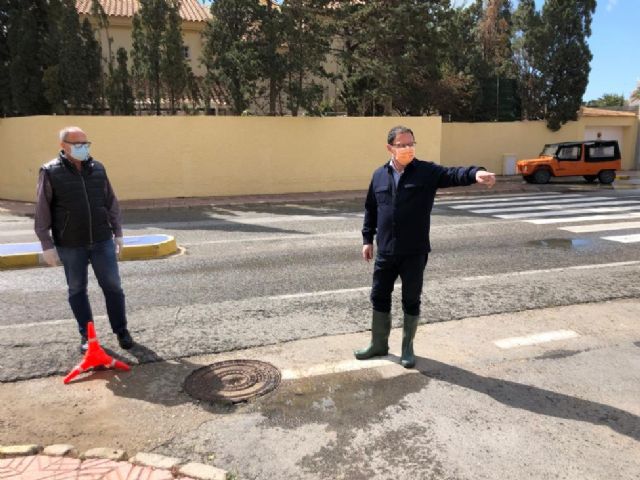 El alcalde de Mazarrón, Gaspar Miras, y el concejal de Servicios, Tomás Ureña, han estado esta mañana en la urbanización visitando estos puntos que, a pesar de los concienzudos trabajos realizados, siguen presentando problemas cuando las lluvias se intensifican por la llegada de una DANA, y con el fin de tomar nuevas medidas que puedan paliar los efectos de las precipitaciones.
