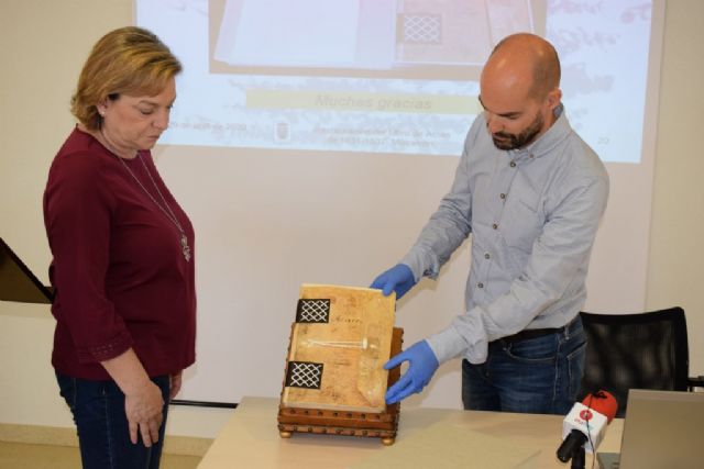 El Archivo Municipal de Mazarrón cuenta desde hoy en sus fondos con un nuevo libro manuscrito restaurado. En esta ocasión, se ha llevado a cabo la restauración del Libro de Actas del Ayuntamiento de Mazarrón de 1631 a 1637 a cargo de la empresa 'ConservaDo'. Los trabajos de recuperación del documento han sido presentados por el teniente alcalde de Cultura y Patrimonio Histórico, Ginés Campillo, y el restaurador de la citada empresa encargado del proceso, Mario Antonio Moreno.