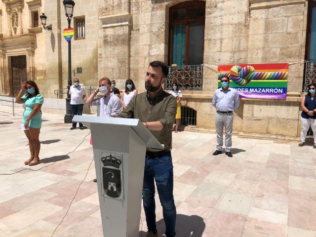 Este viernes tuvo lugar en la plaza del Ayuntamiento, a las puertas de Casas Consistoriales, la lectura de manifiesto en defensa de los derechos LGTBI, con motivo de la celebración del día internacional del Orgullo. Un acto organizado por el colectivo 'Entiendes Mazarrón', que ha estado arropado en todo momento por alcalde de Mazarrón, Gaspar Miras, el concejal de Igualdad, Miguel Ángel Peña, los portavoces del Grupo Municipal Socialista, Plácida Gómez, del Grupo Unión Independiente de Mazarrón, Ginés Campillo, y Sara Redondo y Soledad Muñoz en representación del Grupo Municipal Popular y de Ciudadanos respectivamente; así como la práctica totalidad de concejales del Equipo de Gobierno