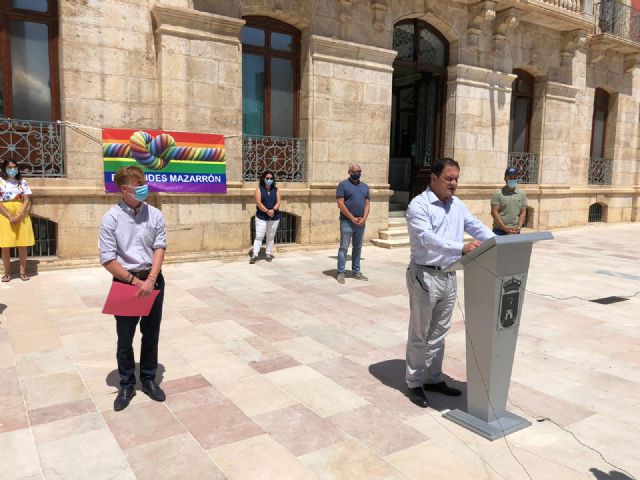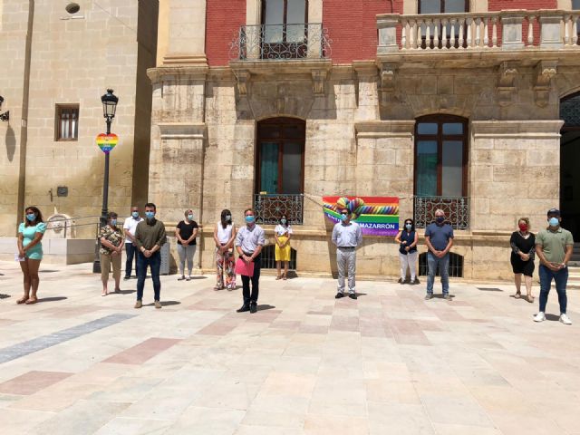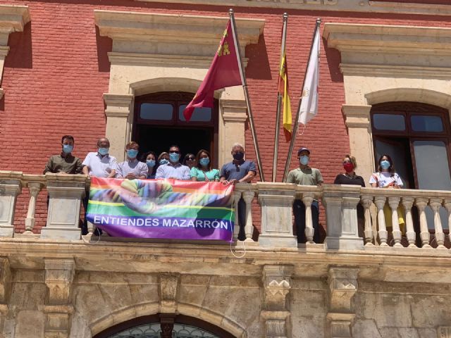 El acto finalizó con la colocación de una pancarta del colectivo 'Entiendes Mazarrón' en el balcón del emblemático edificio de Casas Consistoriales en señal del apoyo del Ayuntamiento de Mazarrón a la causa LGTBI.