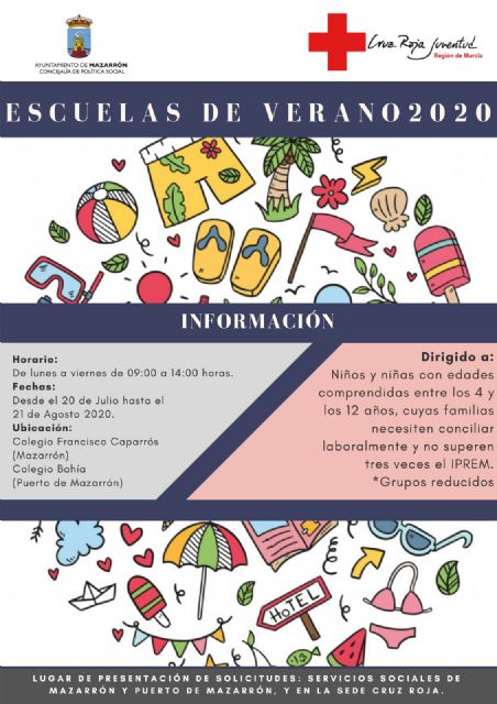 Lugar de presentación de solicitudes en Servicios Sociales de Mazarrón y Puerto de Mazarrón y en la sede de Cruz Roja. El plazo de presentación será hasta el jueves 16 de julio y el viernes 17 de julio se llevará a cabo la selección por el departamento de Servicios Sociales del Ayuntamiento junto a Cruz Roja de Mazarrón.