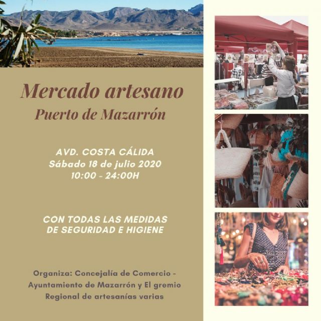 Este sábado 18 de julio, vuelve el Mercado Artesano a Puerto de Mazarrón con la participación de 26 puestos artesanos del Gremio Regional de Artesanía que ofrecerán sus mejores productos y creaciones pero, en lugar de tener lugar en el paseo marítimo, se celebrará en la Avenida Costa Cálida, junto al Centro de Salud de la localidad costera.