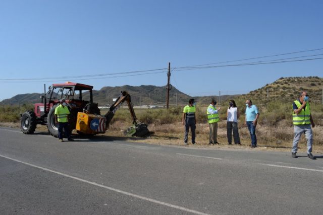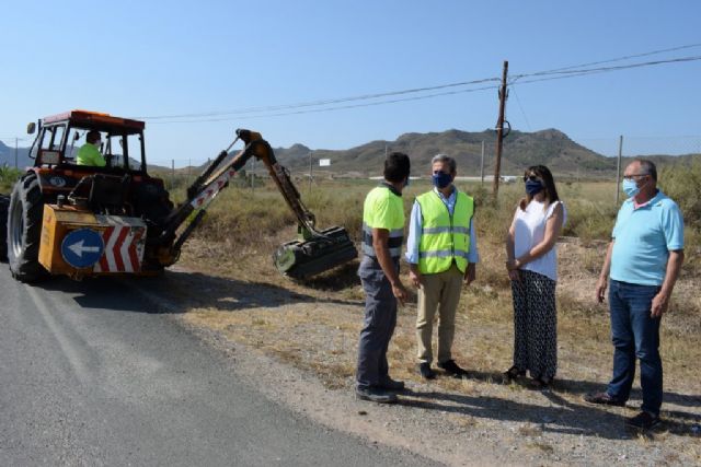 Esta mañana el Director General de Carreteras de la Consejería de Fomento e Infraestructuras, José Antonio Fernández Lladó, acompañado de los concejales de Medio Ambiente y Servicios, Plácida Gómez y Tomás Ureña; ha visitado las obras de la carretera RM-D4, que consisten en "el desbroce y la mejora y acondicionamiento de las cunetas en dicha carretera", tal y como ha mencionado la edil Plácida Gómez. Unas labores que se han llevando a cabo en otras vías de titularidad autonómica como la carretera entre Mazarrón y Puerto.