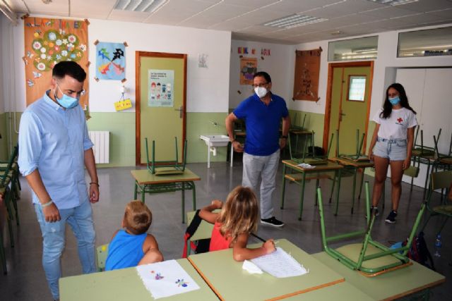 Esta mañana el Alcalde, Gaspar Miras, y el concejal de Política Social, Miguel Ángel Peña, han visitado las escuelas de verano organizadas por la Concejalía de Política Social y coordinadas por Cruz Roja Mazarrón; ubicadas en los colegios 'Francisco Caparros' de Mazarrón y 'Bahía' de Puerto de Mazarrón. De esta manera, han podido constatar el desarrollo de esta iniciativa y conocer de primera mano el trabajo realizado por los monitores desde el mes de julio.