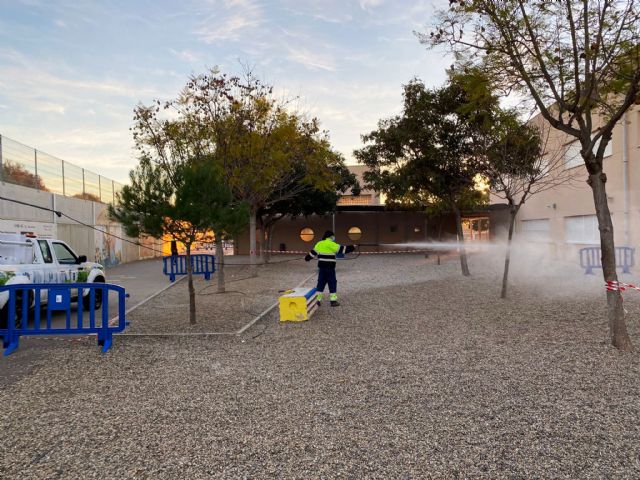 El edil de Servicios, Tomás Ureña, ha explicado que "desde el regreso de los escolares a las aulas, se venía realizando una desinfección de las puertas y entradas de los centros pero, con motivo de la delicada situación que atravesamos por la pandemia, se han ampliado estos trabajos a los patios y pistas deportivas para ofrecer una mayor seguridad a nuestros escolares con el visto bueno de los directores y directoras de los centros".