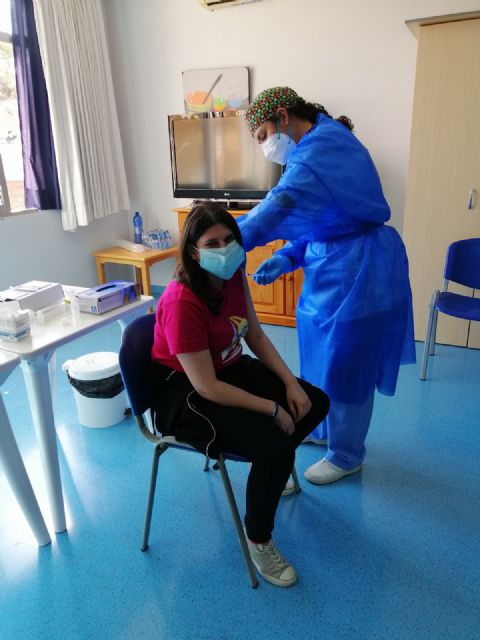 Los usuarios y profesionales del Centro de Día de Personas Con Discapacidad Intelectual de Mazarrón han recibido esta mañana la segunda vacuna contra la Covid19, cumpliendo con el proceso de vacunación que comenzó el pasado 2 de febrero con la administración de la primera dosis.