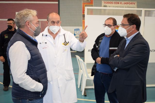 Gaspar Miras y Ginés Campillo han mantenido una conversación con los responsables del dispositivo que han calificado el comportamiento de los ciudadanos de Mazarrón como "modélico", para que la vacunación pudiera desarrollarse tranquilamente, en las mejores condiciones y sin incidentes como ha ocurrido; y han agradecido la labor y apoyo del Ayuntamiento, Policía Local, Protección Civil y Cruz Roja