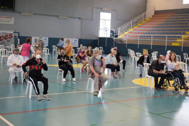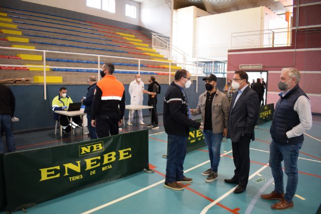 El alcalde de Mazarrón, Gaspar Miras, y el teniente alcalde, Ginés Campillo, han acudido esta mañana al pabellón de deportes de La Aceña donde han podido comprobar el desarrollo de la vacunación masiva que el Servicio Murciano de Salud ha llevado a cabo a los nacidos entre los años 1956 y 1960. Durante toda la jornada también ha estado apoyando a las autoridades sanitarias el concejal de Sanidad, Francisco José García, así como agentes de Policía Local, miembros y voluntarios de Protección Civil y Cruz Roja