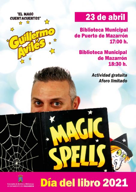 La Concejalía de Archivo y Bibliotecas se prepara para celebrar el 'Día del Libro' con dos cuentacuentos que se realizarán bajo las medidas de seguridad ante la Covid. Este viernes 23 de abril se llevará a cabo un cuentacuentos mágico que será protagonizado por el 'Mago Cuentacuentos', Guillermo Avilés, y tendrá lugar a las 17:00 horas en la Biblioteca Municipal del Puerto de Mazarrón y las 18:30 horas en la Biblioteca Municipal de Mazarrón.