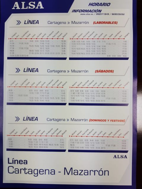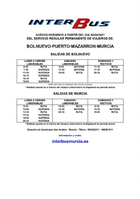 Las empresas InterBus y Alsa informan de la ampliación de los servicios de autobús en las líneas Bolnuevo-Mazarrón-Murcia y Mazarrón-Cartagena