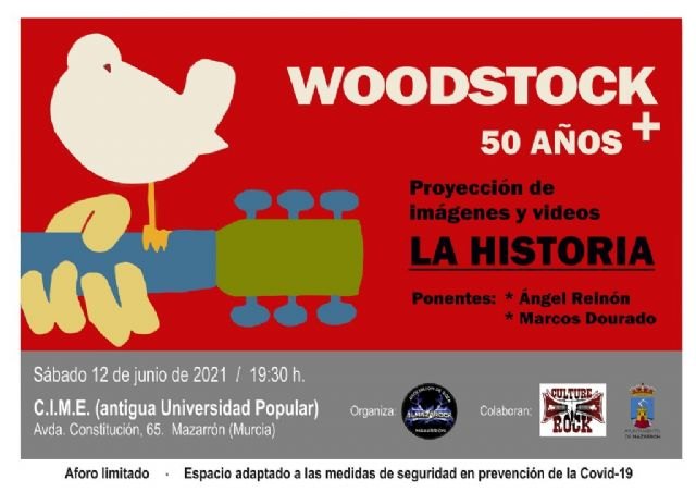 La Asociación Almazarock de Mazarrón, junto a Culture Rock de Totana, realizarán un homenaje al mítico festival de música y arte de Woodstock. El acto se llevará a cabo el próximo 12 de junio, a las 19:30 horas, en el edificio del CIME (antigua sede de la Universidad Popular), según informaron fuentes municipales en un comunicado.